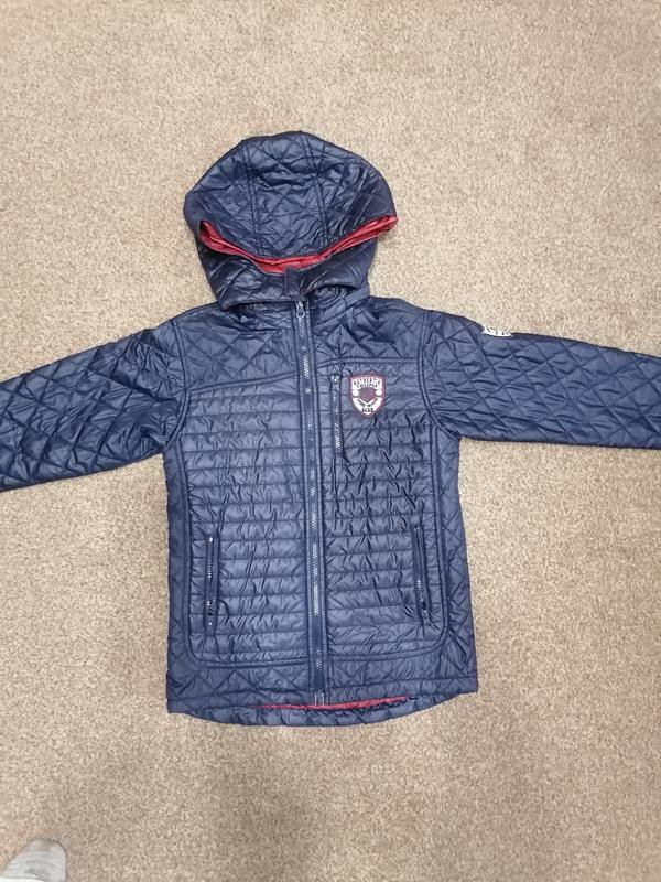 Куртка демисезона на мальчика 8-10роков. Темно синего цвета, на красной подкладке. Стегана. На молнии. Карманы тоже на молнии. Сзади удлиненная. Очень качественно пошита. Манжеты на резинке. Капюшон съемный, на молнии. Заміри надала на фото. Если нужны дополнительные замеры, пишите.