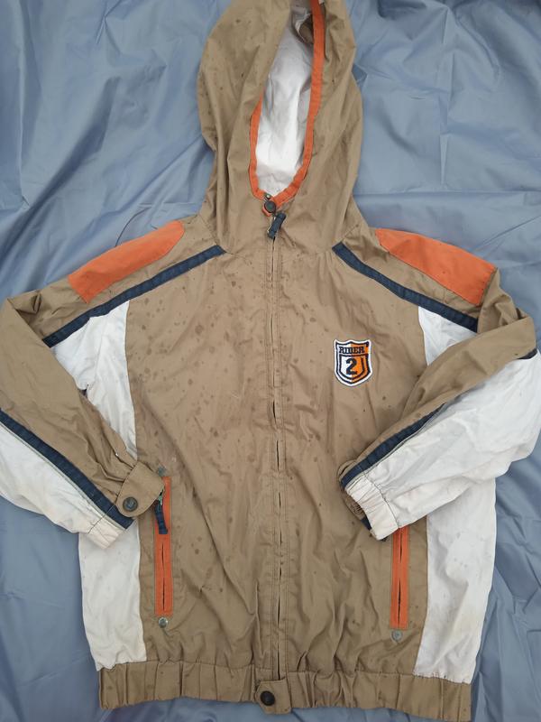 материал хорош без дефектов состояние идеально На рост 128 Длина 54 Рукав 43 Груди 50 Плечи 42 (на фото капли от дождя, попал под дождь когда фотографировала)