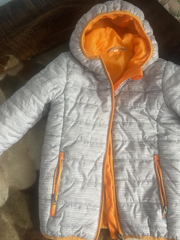 Стьобана куртка для хлопчика. Куртка сірого кольору Помаранчева підкладка Одягали декілька разів