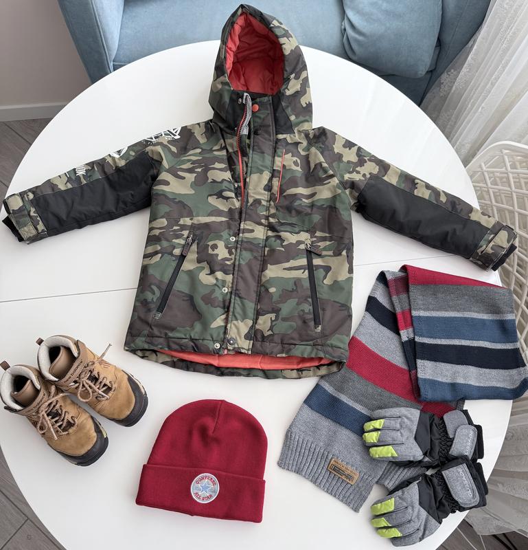 Продам комплект для вулиці на холодну осінь/ зиму. Пробігали цілу зиму у курточці на вулиці, під низ фліска і можна вільно гуляти. Стан середній, для майданчиків супер. Курточка тепла Next 116 см, черевики New balance 32 розмір 20 см устілка. До комплекту у подарунок шапка Converse (50% шерсті), теплі рукавички і шарф. Курточка-парка має потертості на рукавах, незначні потертості, наліпки вже також позлазили, потертості світловідбивних елементів через катання на дитячих гірках, на фурнітурі. Дуже щільна тепла парка, висока горловина, глибокий капюшон, на рукавичках текстильні манжети, для закисту ручок від вітру. Заміри: - довжина перед 53 см, зад 56 - рукав від горловини 49 см, з манжетом 51 см. - НОГ 42 см Черевики 20 см устілка, демічеревики New balance шкіра, нубук.