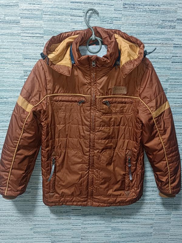 Куртка на подростка, демисезонная. Капюшон снимается. Есть следы ношения, с дефектом, на 7-м фото, пятно, надо оснастить. Размер - 42, смотрите по замерам: длина - 56см, полуобхват груди - 43см, рукава с манжетом - 54см, полуобхват бедра - 44см.