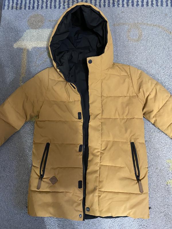 Куртка двусторонняя ( черная и свет коричневая, можно надевать и так и так) Размер 128 Замеры Рукав 44 В плечах 36 Груди 45 Длина 63 Не попрана, користувались один сезон