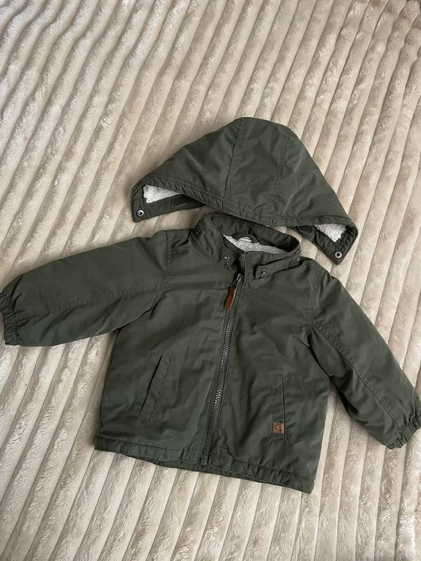 Тепла, м’яка всередині. Знімний капюшон. Колір: хакі (універсальний, підходить і для хлопчика, і для дівчинки). Стан дуже хороший Розмір 80 9-12 м