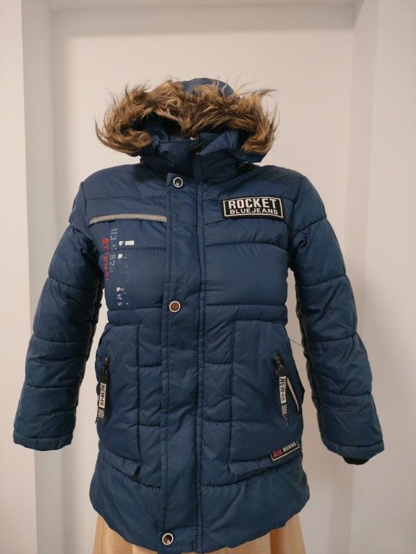 Детская куртка с утеплением мех.Рукав с манжетами. Капюшон отстегивающийся.Цвет темно-синий. длина переда 62 длина рукава 45, с плечом 58 ширина под рукавами 44 ширина плечей 40