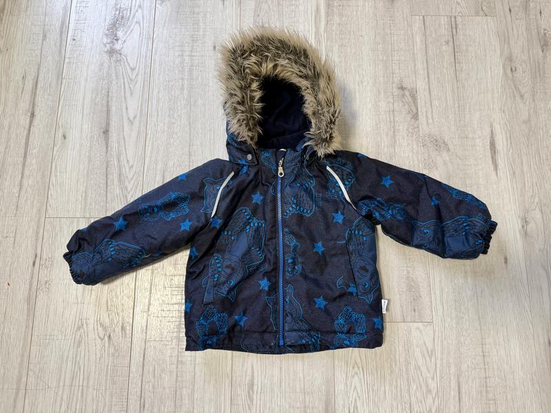 Куртка в дуже хорошому стані, єдине незначні потертості на рукавах і внизу блискавки (фото). Розмір 86, але більшемірить. Дуже комфортна, тепла. Були дуже нею задоволені.