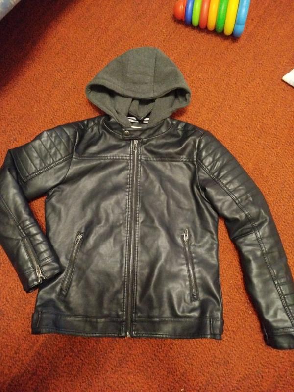 Продам куртку (кожам) очень красивая, стильная, в идеальном состоянии на парня 11-12 лет, капюшон снимается, утеплитель внутри приемный, что-то напоминает велюр,микрофлис. Длина 60 рукав 59 грудь 49 талия 46 по низу 48