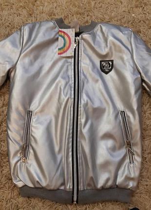 Крутой бомбер на мальчика в серебре,на 140-146,замеры по запросу.