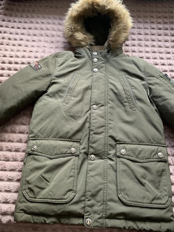 Зимова куртка на хлопчика 146-152 . Дуже легка, тепла, водовідштовхуюча тканина. Хутро на капішоні відстібається, всі замки і кнопки робочі. Стан дуже гарний. Довжина 65 Рукав від горла 64 Ширина 47