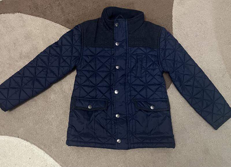 Класна куртка, на маленького стилягу, по бірці 7 років, але носили з 5 років. В середині фліс. Довжина від плеча 52, ог 36, рукав 44