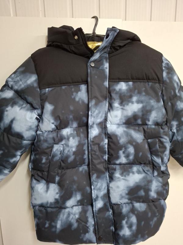 куртка подростковая для мальчиков зима теплая удобная с капюшоном цвет:черный с голубым материал:Полиэстер Рост:150 Замеры: Плечи:44см ПОГ:53см ПОТ:52см НИЗ:52см Рукав от горловины:57см Рукав по нижнему шву:37см Длина изделия:70см