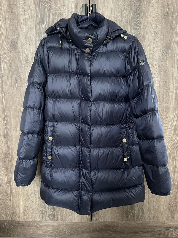Зимова куртка на пуху. Тепла і в той же час легка. Каптур відстібається. На ріст 165 довжина буде до середини стегна. Довжина по спині 72 см, довжина рукава 60, напівобхват грудей 50. Купила , але жодного разу не вдягла. Стан нової. Розмір s. Колір насичено темно-синій
