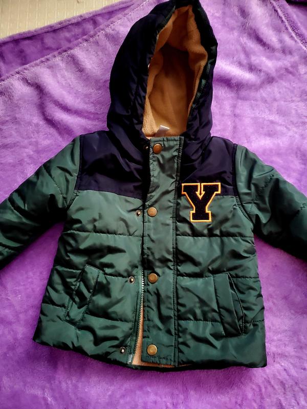 Курточка для мальчика на 1 год, можно носить от 9 месяцев. Куртка зеленого цвета с синими вставками. Имеет 2 внутренних кармана, капишон. Защелкивается на замочек и на кнопки. Утеплитель флис. Качественная, удобная, теплая курточка. Замеры: ПОГ - 30 см По низу 33 см Длина 34 см Рукав 26 см