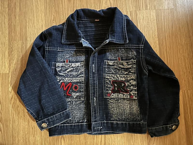 Розмір вказан дитячий xxl, приблизно 2/4 роки, краще орієнтуйтесь на заміри: Напівобхват грудей 34 см Довжина рукава від шиї 44.5 см Довжина куртки від плеча 38 см