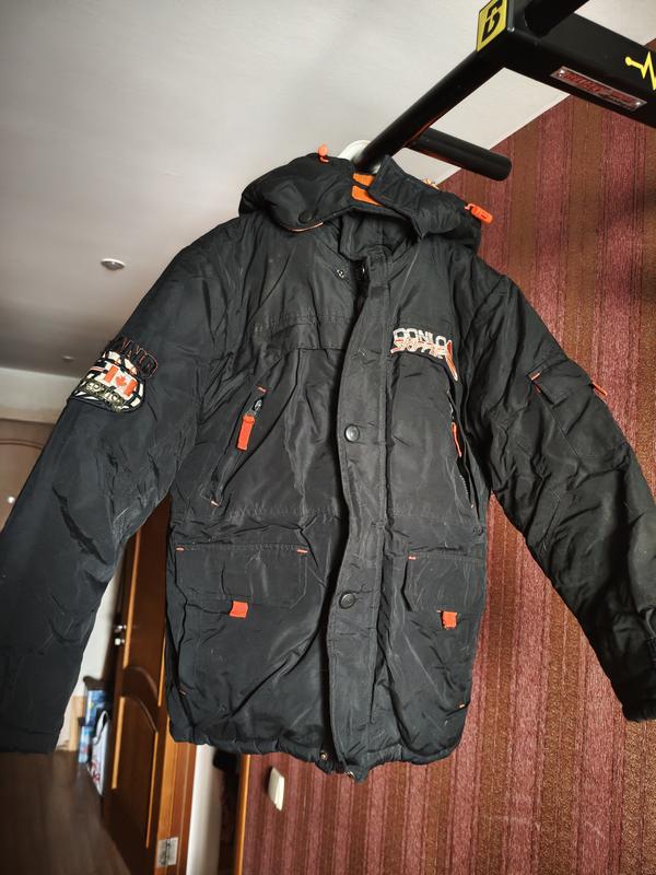 Куртка зимняя детская для мальчика. Очень теплая. Съемный капюшон. Рукава с манжетами и на липучке. Многие карманы ( 5 снаружи и 3 внутри) низ куртки на затяжке. Замеры: спина - 59. рукав - 59. грудь - 47.