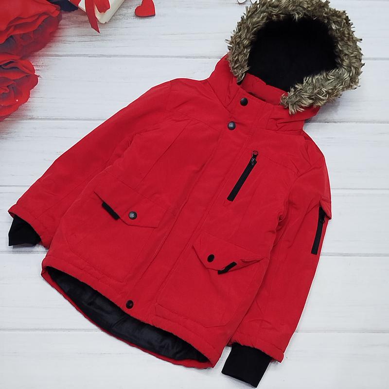 Демосезонная куртка/ парка на мальчика 5/6 р Фирмы Nutmeg Дополнительные замеры длина 47/52 см обхват 39 см рукав от плеча 39 см без манжета рукав от шеи 45 см без манжета Есть незначительный нюанс фотодаля.