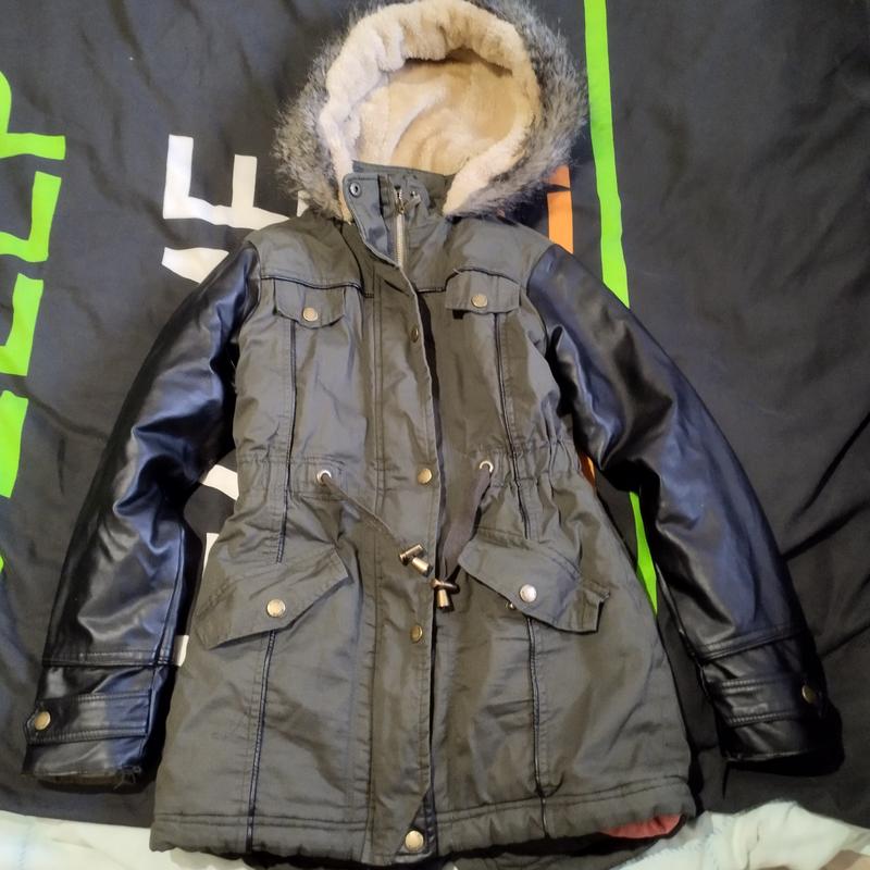 куртка парка для хлопчика на 9-10р,рукава екошкіри капішон на овчині підкладка синтипон виглядає бомбезно