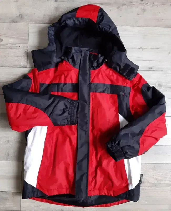 Куртка пречудова !!! Цвета насыщенные: красный, белый, черный. Состояние- отличное. На молнию и дополнительно на липучки. Капюшон отщепляется, утеплен флисом. Воротничок с флисовой подкладкой. Три кармана спереди. Один карман на левом рукаве. Три внутренних кармана различного назначения. Снежная юбка на кнопках и резинке. Материал: 100% полиэстер. Подкладка флисовая. Технология Thinsulate. Низ куртки регулируется за счет вшитого эластичного шнурка со стягивающими фиксаторами. Манжеты рукавов эластичные, дополнительно регулируются липучкой. Рост: 140 см. Возраст: 9-10 лет. Замеры: Длина куртки спереди от горловины-49,5см Длина сзади-61см Плечи-43 см Ширина-48 см Длина рукава-47,5 см Внутренний шов рукава-36 см Полностью соответствует фото!!!