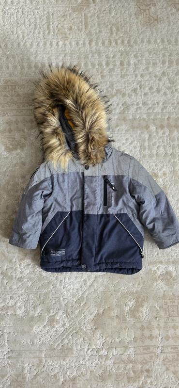 Куртка в хорошем состоянии, нюансы на фото. Теплая, есть внутри жилетка-кожушек, отстегивается. Длина рукава от плеча - 34 см длина по спине - 42 см Мех на капюшоне отстегивается. по наборке размер 86, но будет до 92. есть еще полукомбинезон к ней в идеальном состоянии (см. объявления)