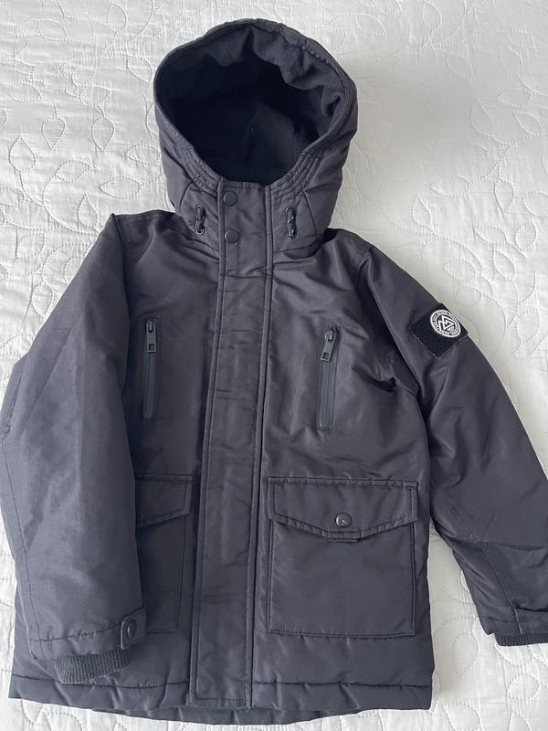Класна тепла куртка для хлопчика. Вітронепродувна. Замок йде повністю під шию, капішон утеплений флісом, на рукавах манжети. Зад трохи подовжений. Вік 5-7 років Довжина 54-56 см Ширина 42см Рукав від плеча 48 см. ік