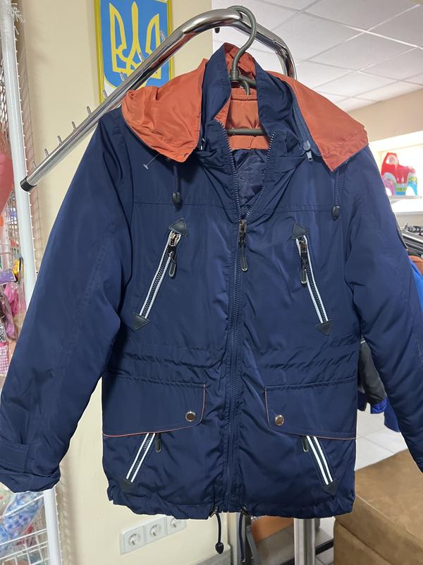 Сезон: демісезон Матеріал щільний, не продувається Утеплена, добре тримає тепло Застібка — блискавка Комір із високим захистом від вітру Зручні кишені на кнопках Колір: темно-синій з помаранчевими вставками Стан: новий