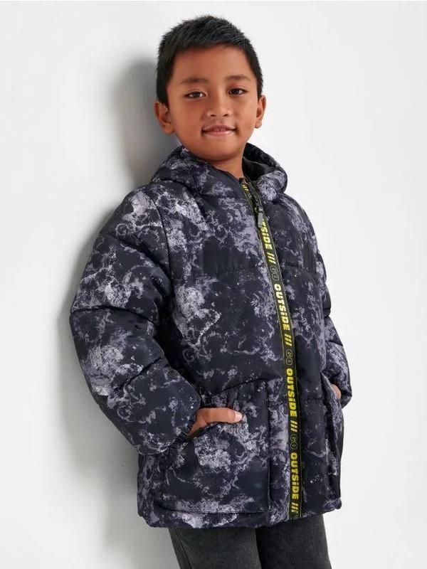 Дуже класна курточка демісезонна на хлопчика. Від бренду Sinsay. Розмір на бірці 104, як на мене то буде на 104-110 см. Непродувна, водовідштовхувальна тканина верху. Має кишеньки і теплий капюшон. Класна якість. Дуже гарна Нова.