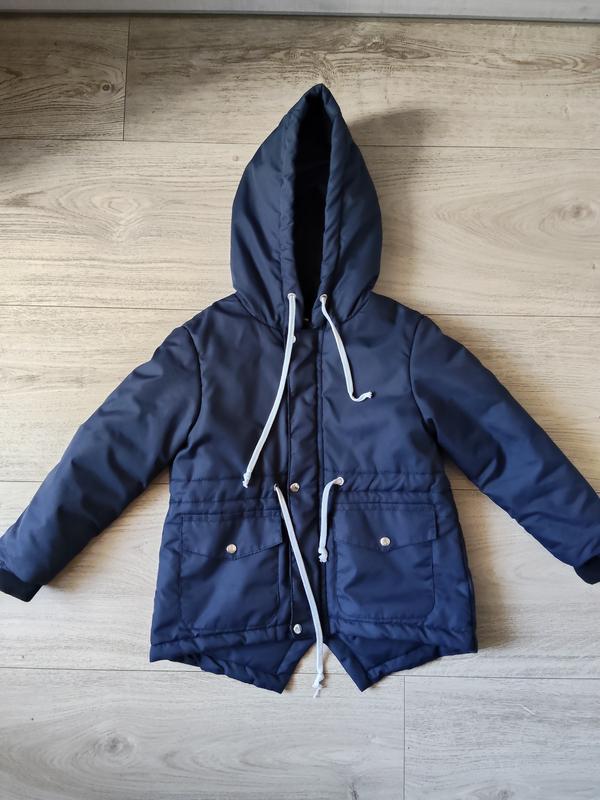 Демисезонная парка в идеальном состоянии. Цвет темно синий, утепление только по спине, замеры на фото. Цвет как мальчику, так и девочке может подойти.