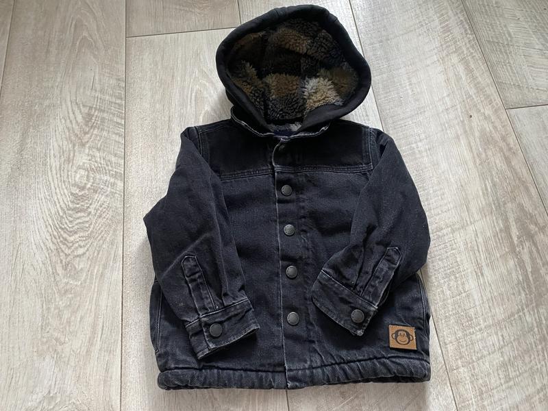 Джинсовка графітового кольору для хлопчиків Йде на кнопках , утеплена , з капюшоном , з кишенями Розмір 98, на вік 2-3 роки
