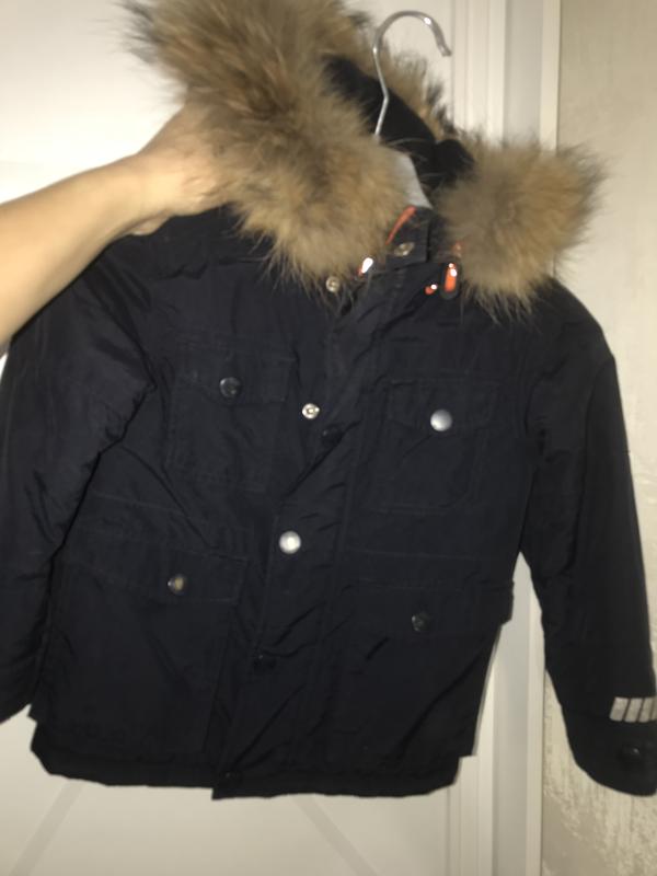 Куртка парка next 4 года с утеплителем. Мех не родной, пришитый натуральный. Сезон теплая зима, весна, осень.