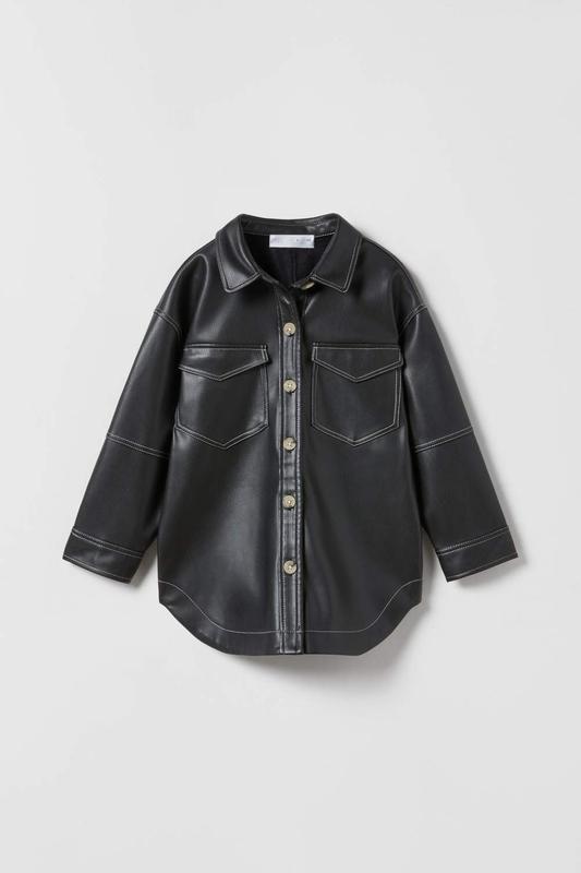 Эко кожа рубашка очень мягкая на ощупь унисекс Бренд Zara на 8-9л Замеры рукав от горла 58 пог 42 длина 57 Состояние в целом отличное есть потёртость на фото показано при желании можно чем-то прикрыть (значком или что- то придумать ) секонд возврата нет