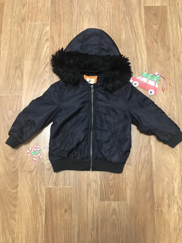 ✔Стильная теплая куртка с капюшоном River Island. По всей длине застегивается на молнию. Спереди карманы. Внутри подкладка и тонкий слой синтепона. Качество на высоте. ✔Размер: 18-24 мес длина по спине ― 31 см, ширина ―30 см, рукав от плеча―30 см.