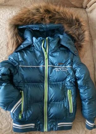 Состояние новой. Капюшон и мех на нем отстегиваются. Легкая, на теплую зиму или холодную весну. Длина рукава 39 см, ширина по плечам 29 см, длина 43 см. Цвет как на фото.