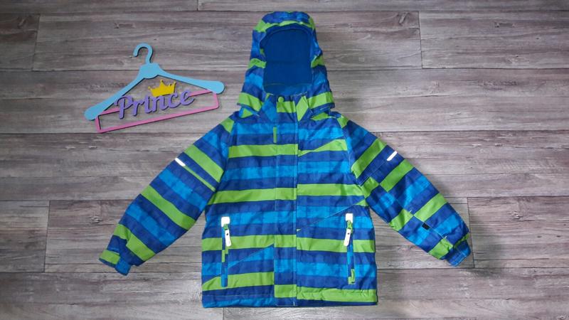 Дуже красива термо куртка на хлопчика)) Стан нової речі) В використанні не була, але і паперових бирок немає)) Підійде на холодну осінь/ теплу зиму Дефектів немає! Довжина 49 ПОГ 42 Рукав від горловини 50 Рукав по внутрішньому шву 33 по низу 40