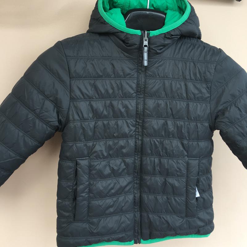 Очень красивая и стильная , двусторонняя курточка. Известного брэнда. Практичная, так как имеет и темную и яркую сторону.