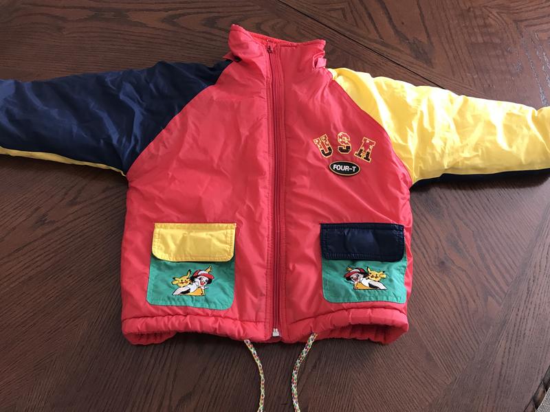 Куртка на мальчика,очень теплая, яркая,стильная.Есть нюанс на фото указала.Может и отстирается.Замеры длина 41, рукав от шеи 38см.