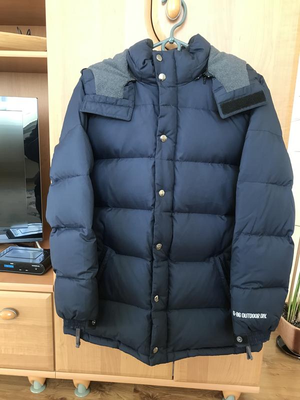 Куртка оригінальна,всі бірки є. Капюшон знімається. Темно-синього коліру. Заміри : плечі - 44см, підмишками - 55см, низ - 52см, довжина - 67см, рукав від плеча - 57см, рукав від підмишки - 45см.