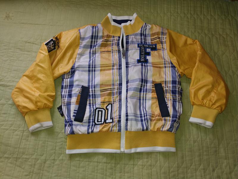 Двусторонняя утеплённая ветровка на мальчика. Длина по спинке-44 см,рукав от плеча-41 см,пог-37 см. Пересылаю