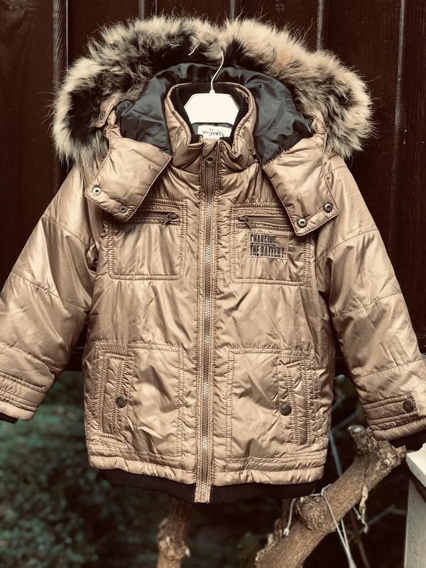 Хорошая,качественная Куртка красивого коричнево-орехового цвета.Мех натуральный-отстегивается. Модель удлиненная,Утеплитель изософт,подкладка хб.Подойдёт на глубокую осень и зиму.Размеры 98-134,наличие уточняйте.Под некоторые размеры есть полукомбинезон .