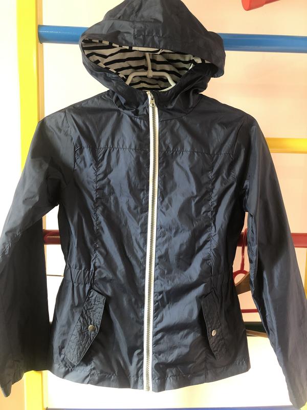 Куртка темно синя з капюшоном. На трикотажній натуральній підкладці. Розмір 152. В ідеальному стані. Практично нова. Одягнута один раз. Якісь бомба. На весну літо супер. Довжина 54 см. Рукав 56 см. Пог41 см