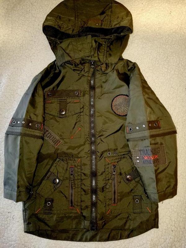 Стильна курточка на вік 4-5 років. Кольору хакі. У відмінному стані. Заміри надам по запиту. Усі питання пишіть сюди.