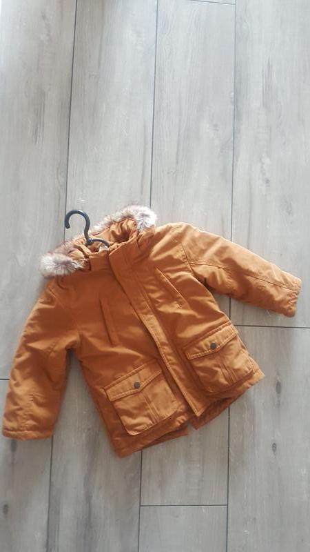 Стильна парка на синтепоні. . На весну осіеь. Замовляла з оф сайту HM на 3 рочки зріст 98 можна і менше .крутий гірчичний колір . Капішончик відстібається. В носці не була. Нова. Просто зрізала етикетку коли міряли речі