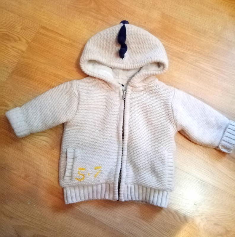 Мега тёплая куртка кофта типа вязки на меху с моднячим капюшоном - дракончиком. На 9-12мес. Мы носили дольше. Есть тепленькие штанишки к ней фирмы h&m +20грн-будет, как костюм
