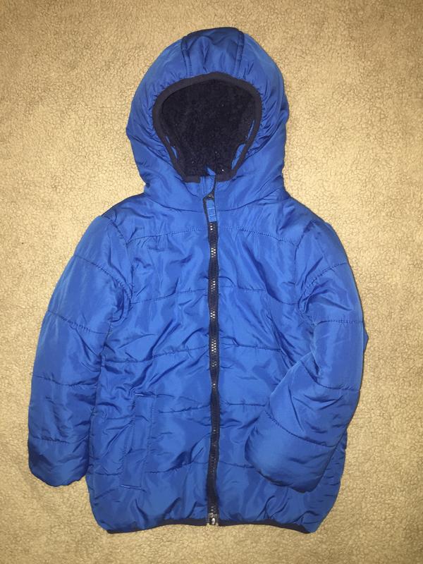 Розмір на 3-4 роки (98-104). Всередині фліс, в капюшоні м'яке хутро. На утеплювачі. Підійде на холодну погоду, на зиму не буде. Дл від плеча 45 см, рукав від плеча 35 см (є трикотажні манжети), пог 37 див.