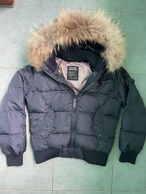 Куртка Bomboogie. Внутри пух. Капюшон мех натуральный, отстёгивается. Пролёт с размером. Качество на высшем уровне. Замеры: плечи 39, ог 48, низ 37, длина 54, длина рукава внеш, 54, внутр, шов 44 см.