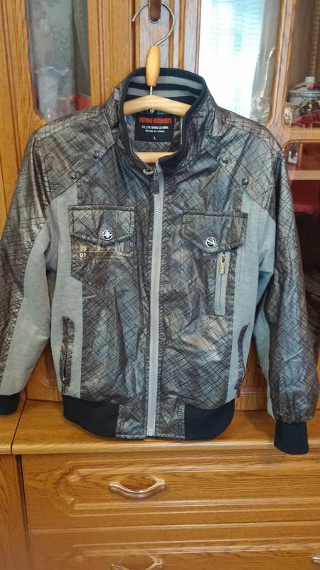 Ткань площевка с трикотажем , низ и рукава на резинке . Длина от воротника до низа 60см, подмышками 45см , длина рукава 45см, с манжетом 51см. Впереди два рабочих кармана. Куртка на подкладке, производство Китай . Зацепок и дыр нет. Торг !!!