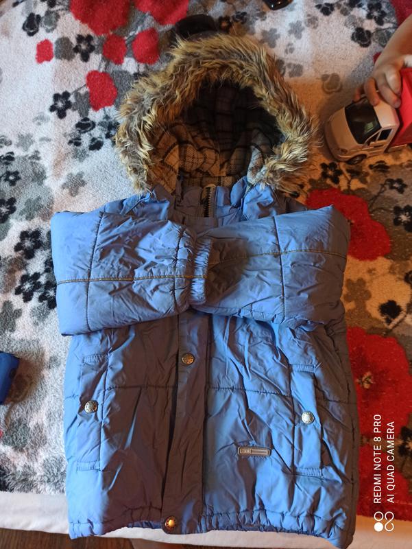 Куртка теплая детская Lenne на 3 года, смотрите замеры на фото. Очень теплая в мороз и не парит в более теплую погоду. Мех не отстёгивается, капюшон отстегивается. Ворот и манжеты рукавов подбиты байкой в клеточку. Низ стягивается резинкой (с карабинами), чтоб не поддувало. Куртка в очень хорошем состоянии, примялась в кульке, и надо освежить стиркой.