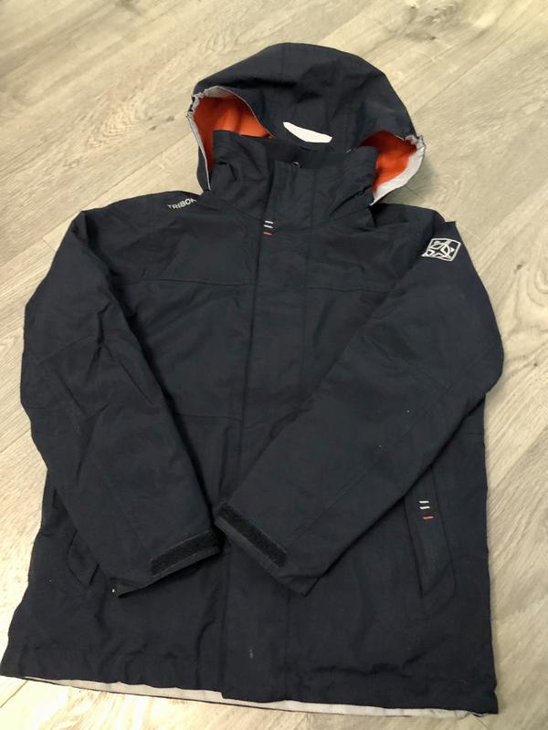 Курточка на хлопчинка.Ріст 140.Стан ідеальний.На дощі не промокає і від вітру захищаю.На курточці є світло відбиваючі елементи(дитину буде видно в темну пору часу)Капішон можна заховани.Довжина по спинці 56см,по ширині 50см,довжина рукава 51см.Стан ідеальний,купляли закордоном.