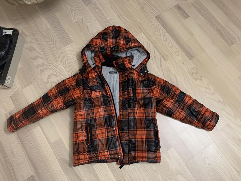 Дитяча фірмова куртка 116 см Довжина виробу 50см; довжина рукава 43 см; Без пошкоджень. Дуже тепла ( європейська зима) Капюшон відстібається Всі замки справні, гудзики на місці