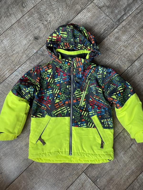 Зимняя (лыжная) куртка ярко-салатового цвета Snow Dragons, для мальчика 4-6 лет. Капюшон съёмный. Цвет на фото не передаёт яркость и красочность крутки. Замеры: Длина 50 см. Ширина 42 см. Рукав от шеи 49 см. Рукав от плеча 39 см.