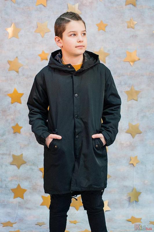 Приймаємо оплату карткою "Пакунок малюка". Парка черного цвета с капюшоном (не снимается). Модель спортивного стиля, застегивается на кнопки, имеет спереди два кармашка, сзади удлиненная спинка. Рукава на резинке и липучке. Ширина в поясе регулируется с помощью шнурочка (вшит внутри). Сзади парку украшает интересный и оригинальный принт белого цвета. В такой верхней одежде Ваш ребенок будет иметь свой индивидуальный стиль и выглядеть модно.