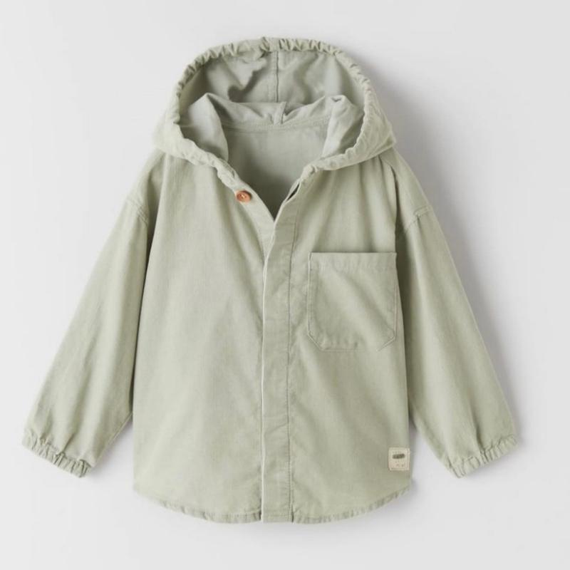 Лёгкая куртка из тонкого вельвета с капюшоном, рукава на резинке, спереди нашит карман. Состав ткани - хлопок 100%. Размер 2-3 года (рост 98 см).